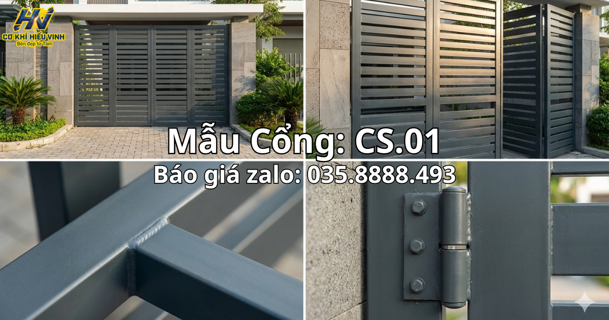 Nếu anh/chị không thích sự cầu kỳ của cổng CNC hay uốn hoa văn, thì mẫu cổng sắt hộp CS.01 chính là lựa chọn hoàn hảo nhất. Đây là mẫu “quốc dân” được ưa chuộng nhất tại các khu đô thị mới nhờ vẻ ngoài hiện đại, chắc chắn và chi phí rất hợp lý.