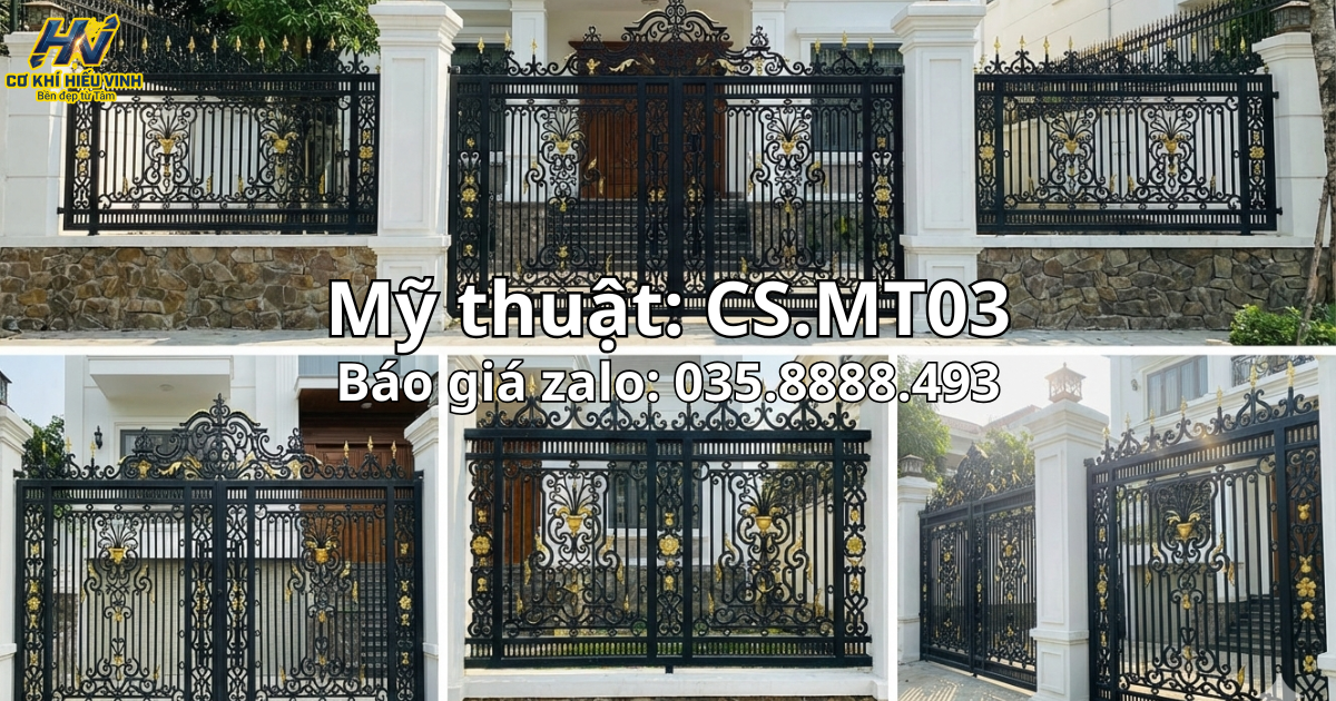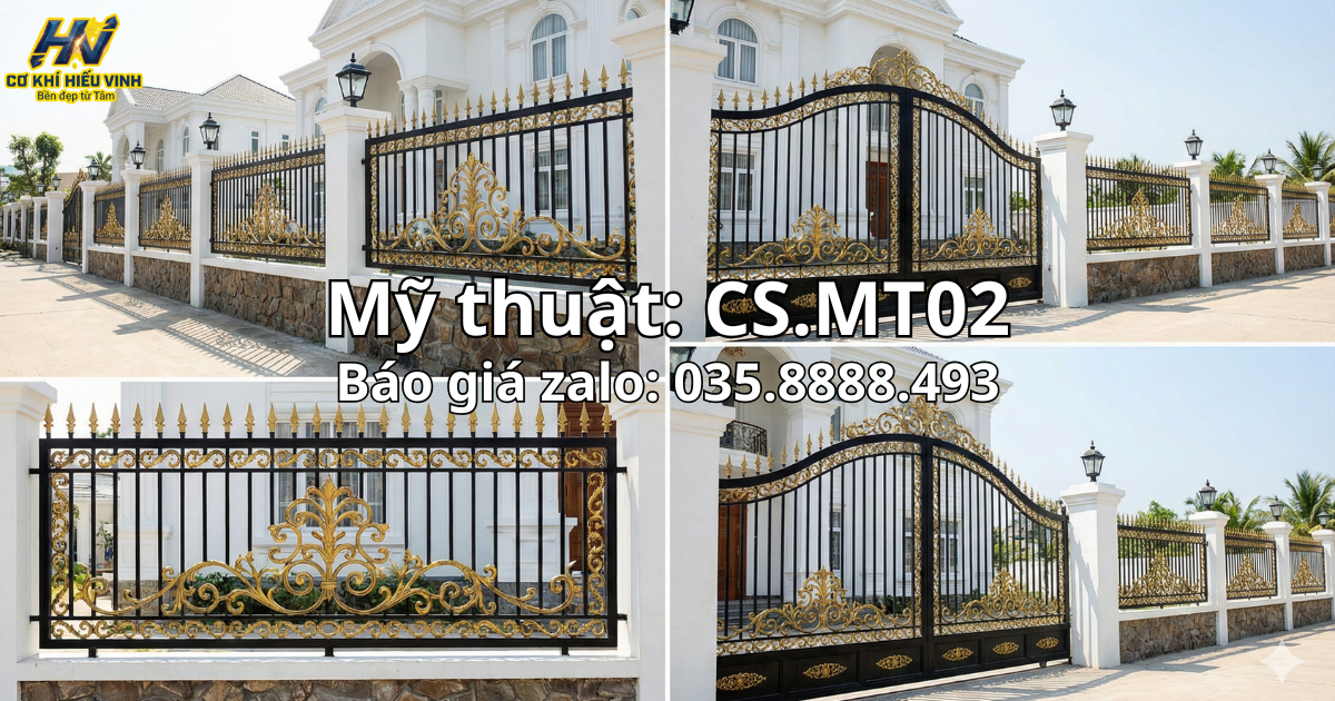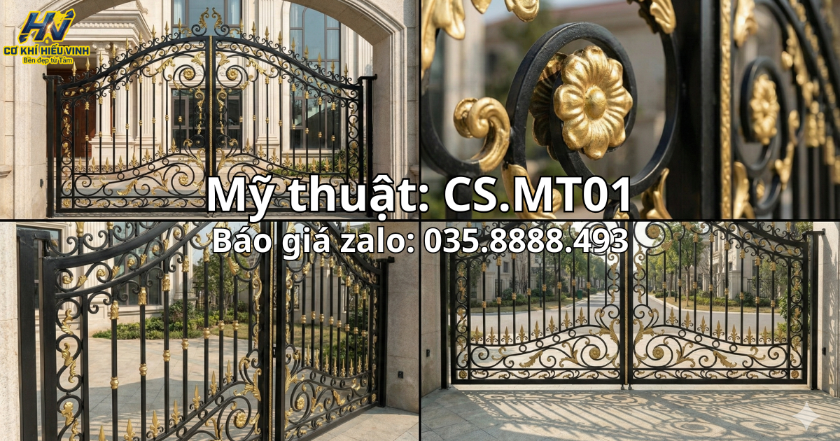 Không đơn thuần là một bộ cổng bảo vệ, mẫu CS.MT01 là một tác phẩm nghệ thuật được chế tác thủ công bởi những người thợ lành nghề nhất tại Cơ Khí Hiếu Vinh.