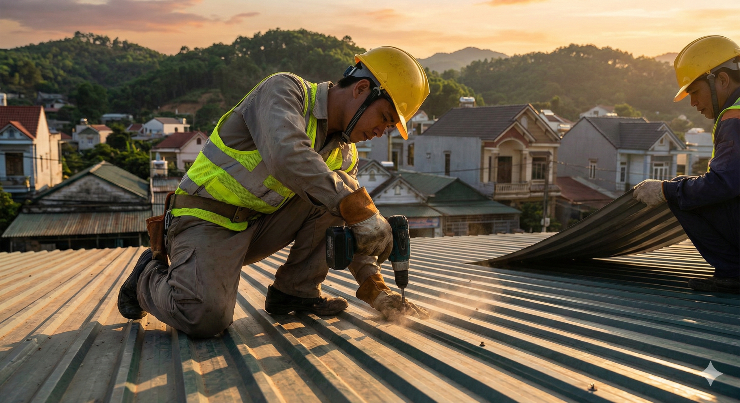 Xử lý chống dột: Tìm và bịt kín các lỗ đinh, khe hở mái tôn cũ.